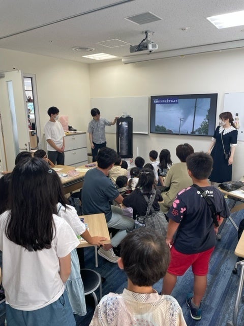 本イベントは、子どもたちへ昨今の異常気象やお天気の知識を分かりやすく解説し、実験や天気予報のキャスター体験を行い、防災グッズの工作や災害への備えについて学べるワークショップです。