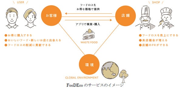 お客様は、アプリで出品されているフードロス商品の情報を店頭に行かなくてもタイムリーに検索・購入、帰り道など好きなタイミングに待ち時間なく店舗で商品を受け取ることができ、フードロスの削減に貢献できます。また、店舗は、本サービスを通じてフードロス商品の情報を発信することによりフードロスの削減と店舗のPRを行うことができます。