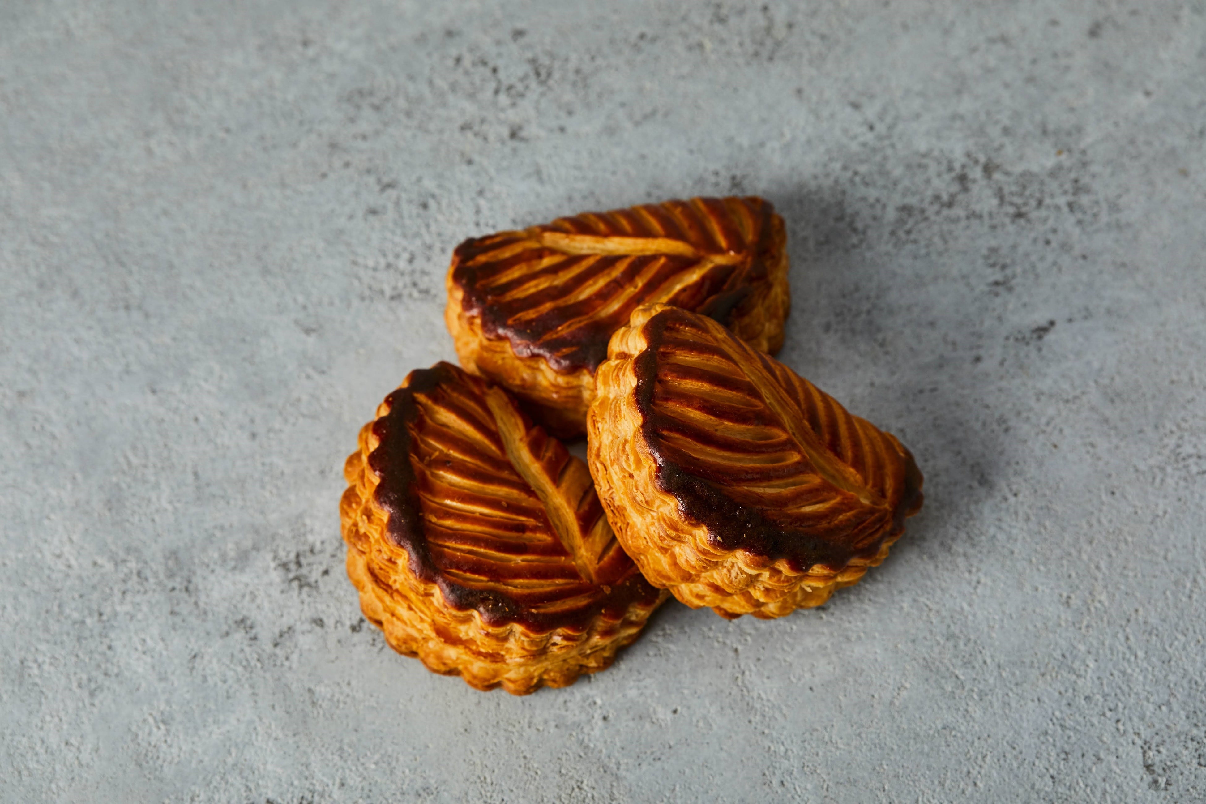 バターに小麦粉の生地を折り込む伝統的な「アンヴェルセ製法」で作られた香り高いパイ生地に、リンゴの濃厚な甘さを合わせたお菓子です。