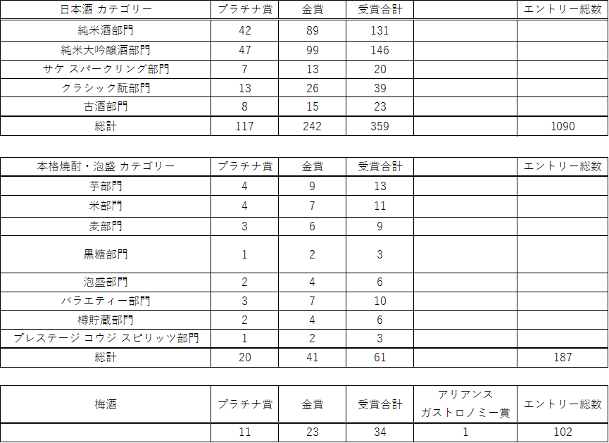 ※受賞酒詳細、審査員経歴詳細については公式HPを参照ください。