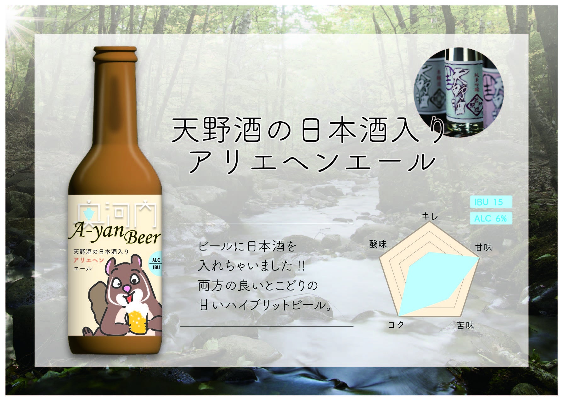 ・天野酒の日本酒入りのアリエヘンエール 10月1日発売予定 売価960円(税込) ABV6% IBU15