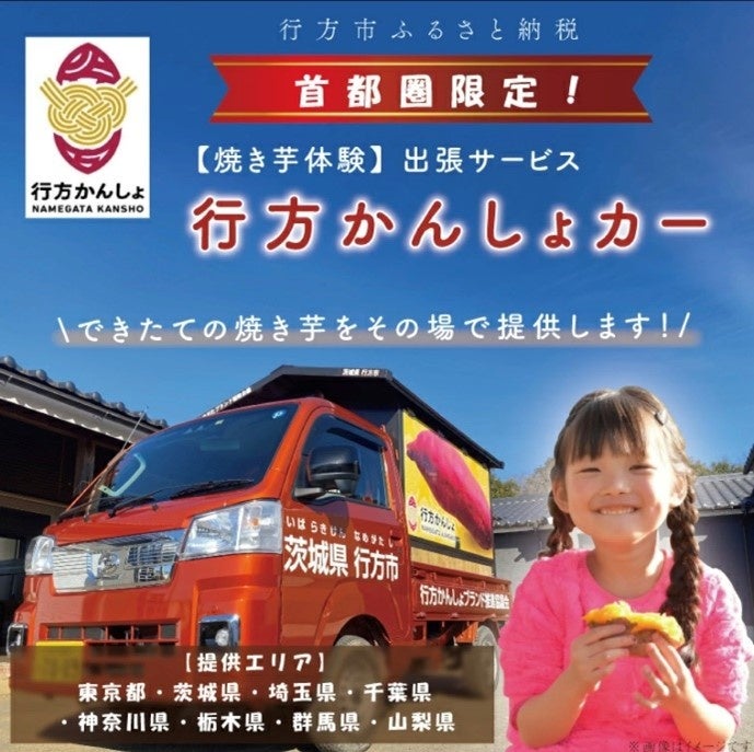 茨城県行方市(市長:鈴木 周也)のふるさと納税に、さつまいも関連の新規返礼品「【焼き芋体験】出張サービス 行方かんしょカー」などを採用し、楽天ふるさと、ふるさとチョイス、ふるなび、さとふるなどを含む12サイトへ出品しました。