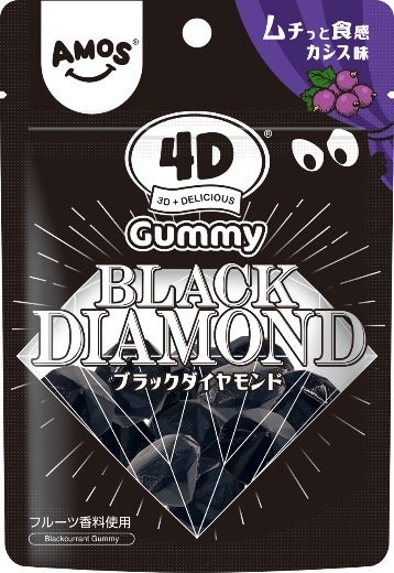 特徴 :立体的で透明感あるダイヤモンド型のムチっと食感のカシス味のグミ
