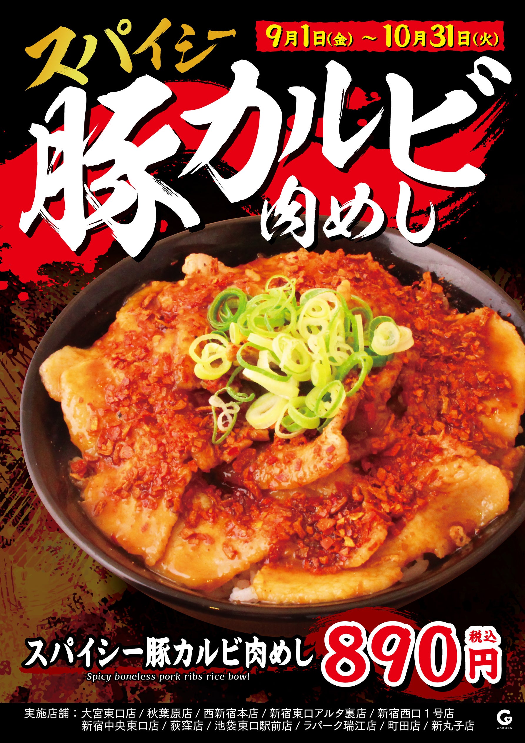 直近、「情熱のすためしどんどん」都心店舗へのアジア系外国人観光客のご来店数が増加しており、外国人観光客を含む多くのお客様から「辛い商品が欲しい」というお声をいただきました。そのようなお客様のお声に応えるべく、この度2023年9月1日(金)から2023年10月31日(火)の期間限定で、『スパイシー豚カルビ肉めし』を販売いたします。