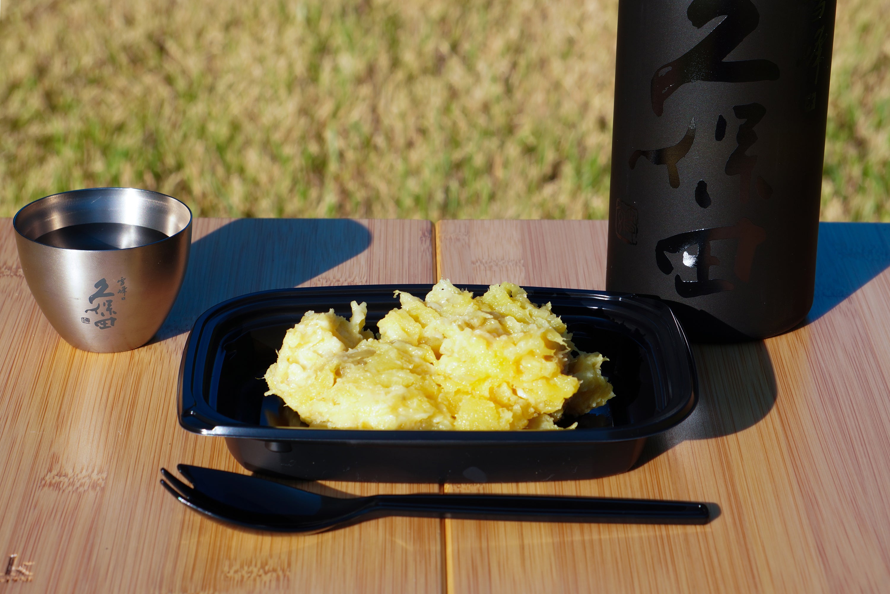 日本酒は、9月4日(月)より出荷開始となる秋限定の『久保田 千寿 秋あがり』や、9月5日(火)より本年2回目の出荷となるスノーピークと共同開発したアウトドアで楽しむ日本酒『久保田 雪峰』など4種類をグラスで提供するほか、『久保田 千寿 秋あがり』『久保田 雪峰』『久保田 純米大吟醸』の日本酒飲み比べセットなども楽しめます。また、その場で『久保田 千寿 秋あがり』『久保田 雪峰』『久保田 スパークリング』をボトルで購入いただくことも可能です。その他、お子様でも楽しめるノンアルコールの『久保田 こうじあまざけ』もご用意します。