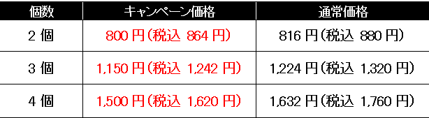 内 容:テイクアウトの牛丼並盛を2個、3個、4個購入時にキャンペーン価格で提供します。
