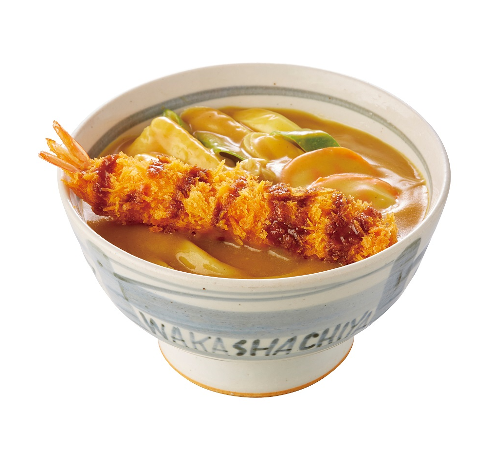 レッサーパンダのしっぽをえびフライで表現したカレーうどん。