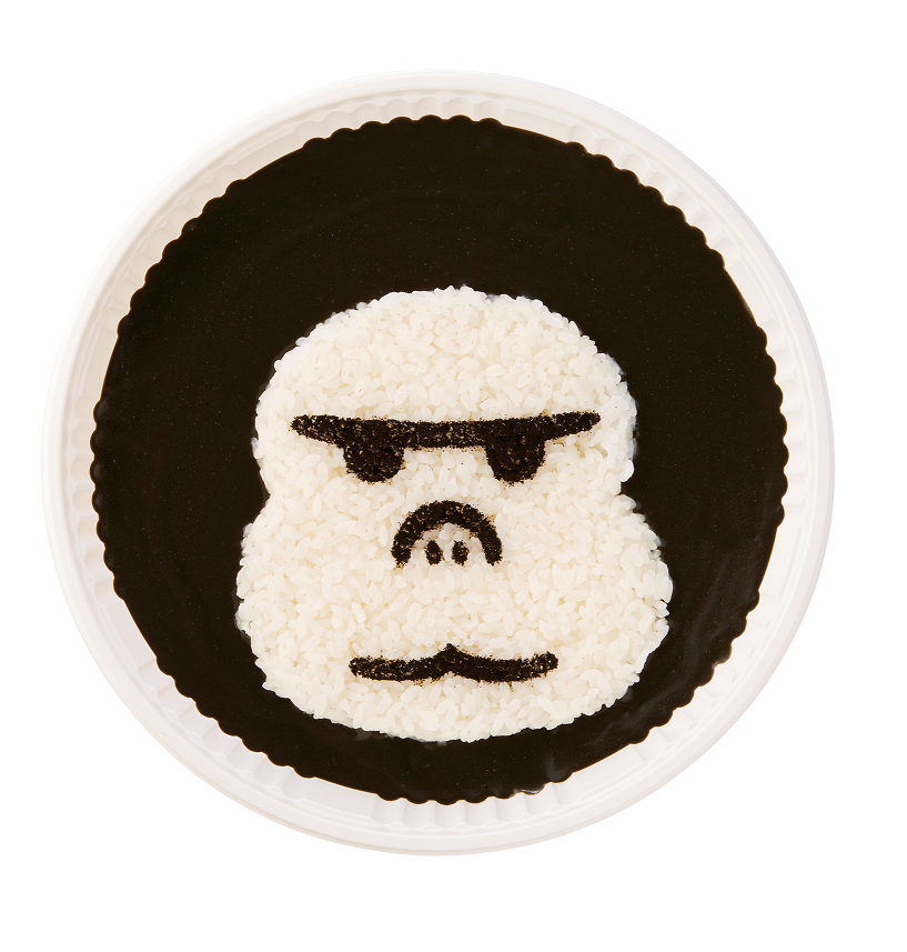 竹炭パウダー入りの真っ黒なカレールゥと白いご飯でゴリラの顔を表現したカレーライス。
