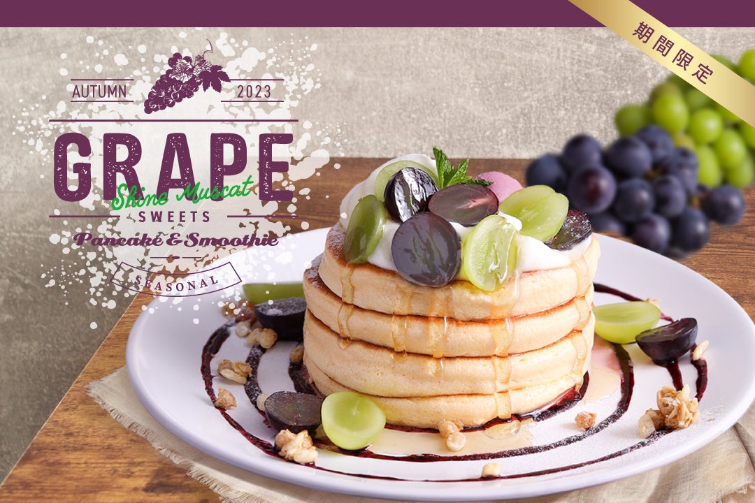 パンケーキと相性抜群の自家製の爽やかなミルキークリームと共に、シャインマスカットと巨峰を堪能いただけます。