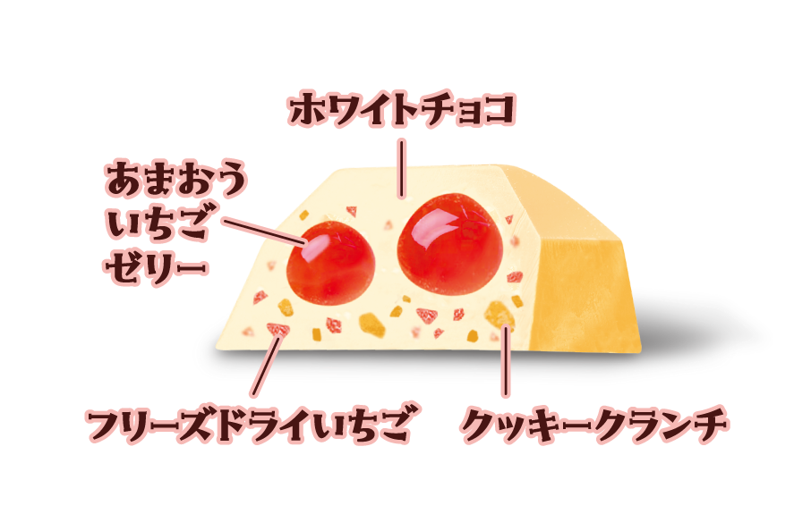 ・あまおういちごゼリーとフリーズドライいちご、クッキークランチが入った大粒ホワイトチョコレート