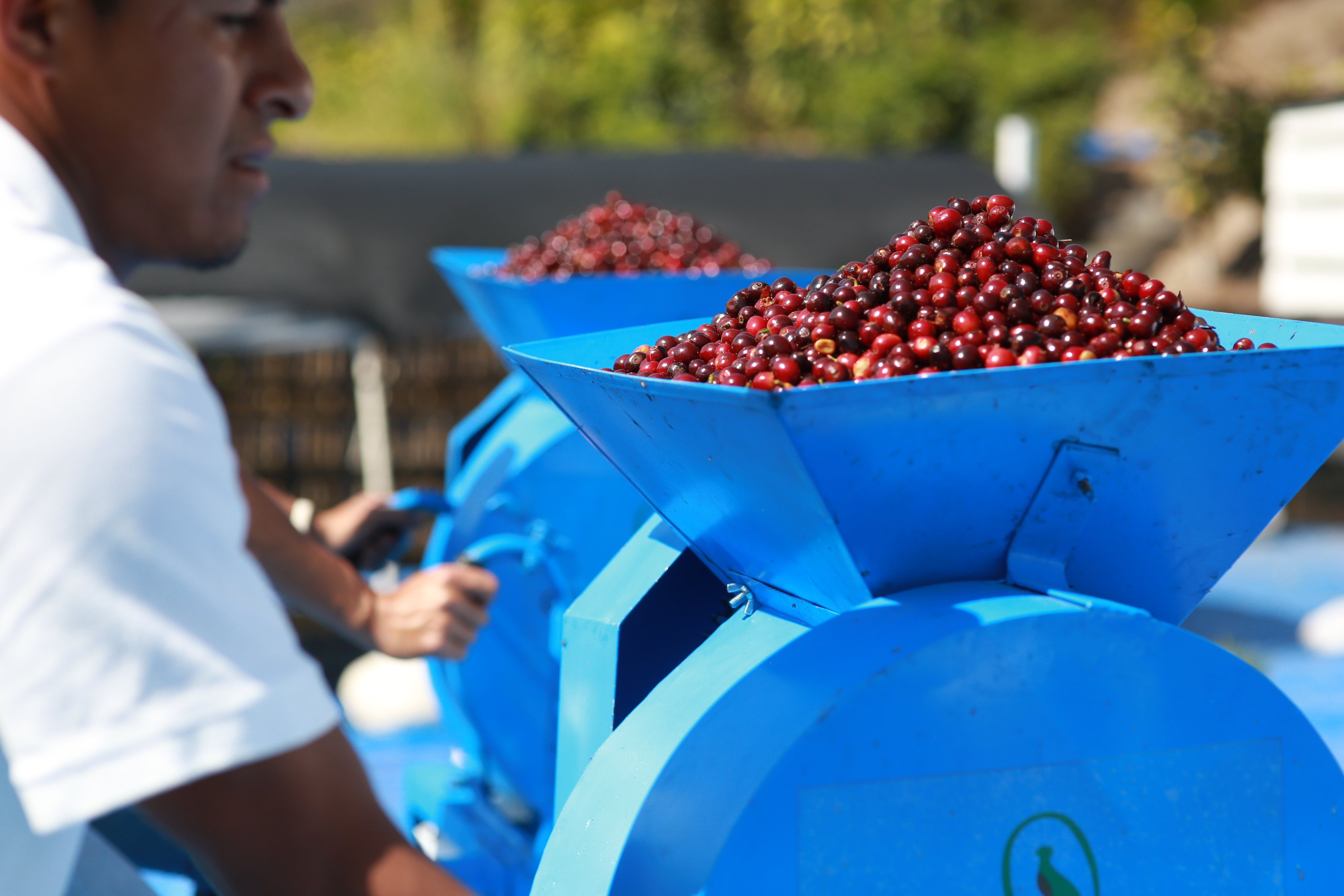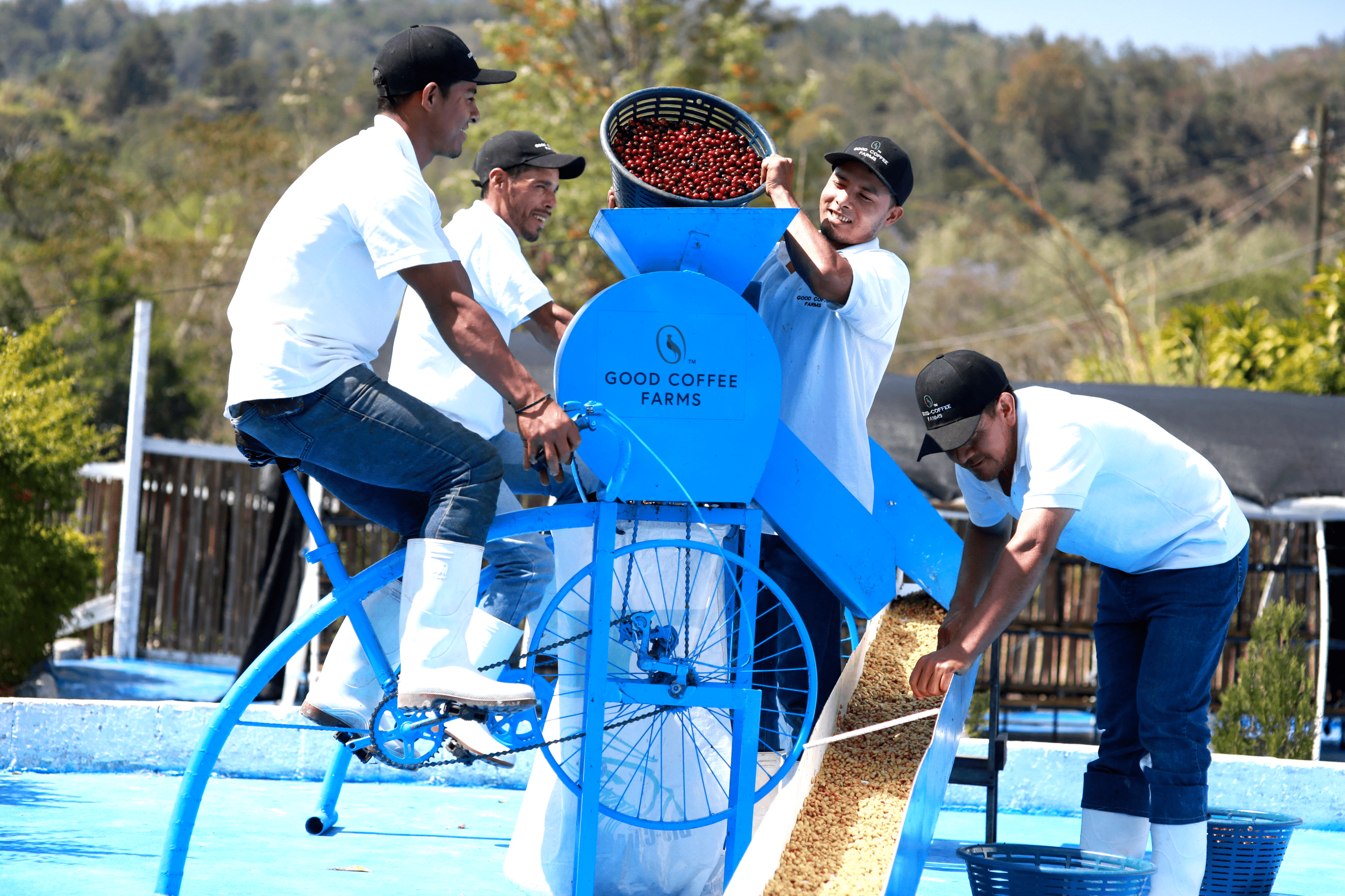 つくり方の大きな特徴の一つが、自社開発した「自転車」を使用する脱穀機「ドライ・バイシクル・パルピング」。安価で誰でも取り扱える脱穀機により、小規模農家たちは自ら精製を行えるようになり、「自分の農園のコーヒー」としてトレーサビリティと付加価値をつけて輸出ができるようになりました。また、自転車による脱穀は、従来の脱穀機で使う大量の水や燃料、電気が一切かからず、環境負荷も抑えたサステナブルなプロセスを実現しています。