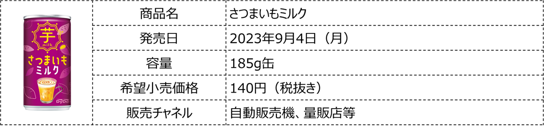 ダイドードリンコ株式会社(本社:大阪市北区、代表取締役社長:中島 孝徳)は、2023年秋冬の新商品として、「さつまいもミルク」を9月4日(月)より発売いたします。