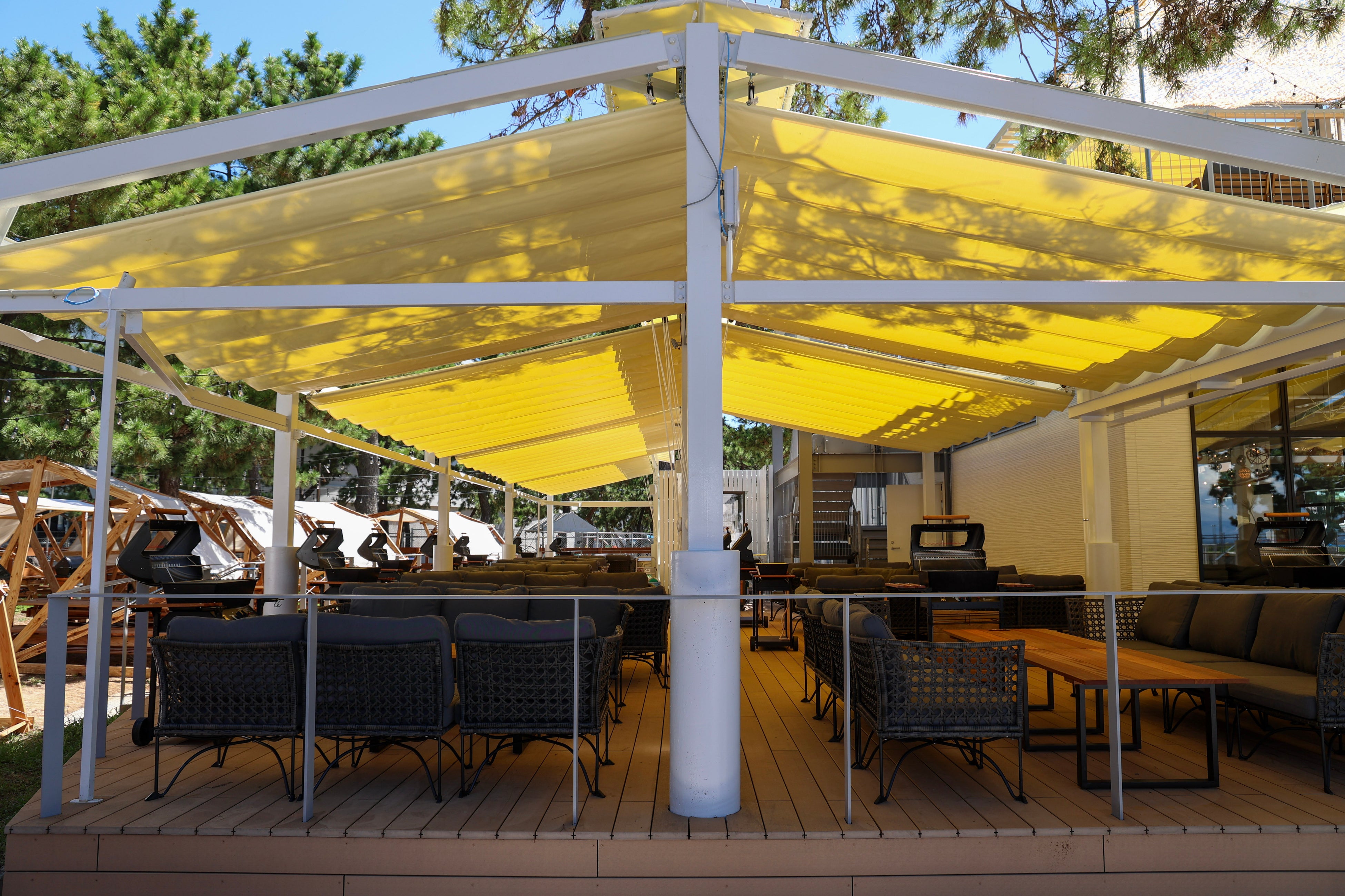 カフェのテラススペースには、約80席のBBQウッドデッキエリア。