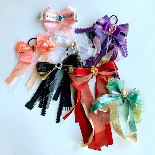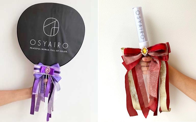 写真は作品例です。リボンのデザインやサイズなどは、自由にアレンジできるので、自分だけのオリジナルのペンラリボンが作れます。製作したリボンをつけるペンライトや応援ウチワなどを会場に持参すると、撮影タイムが盛り上がりそうです。