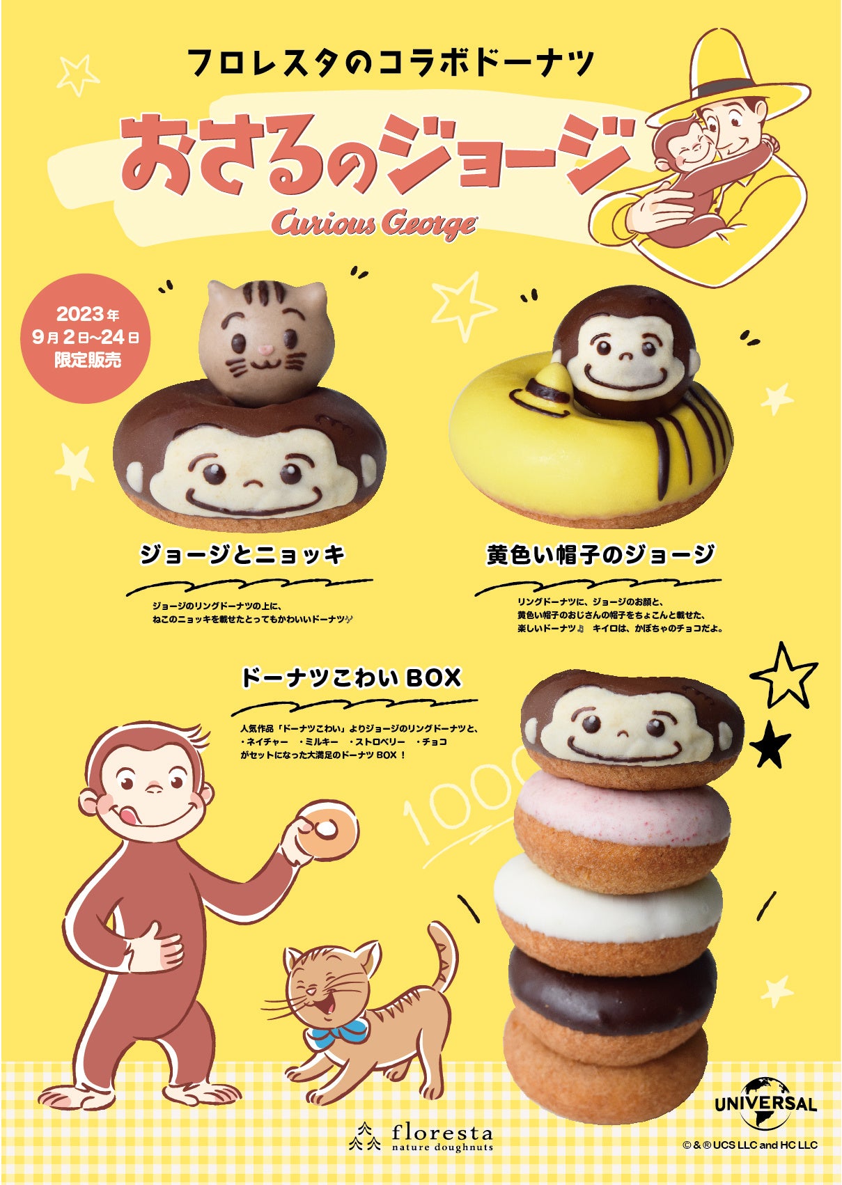 自然な素材にこだわる手作りドーナツ専門店「フロレスタ」に、今回はみ〜んな大好き!「おさるのジョージ」とコラボしたとってもかわいくてワクワクするドーナツが登場します。