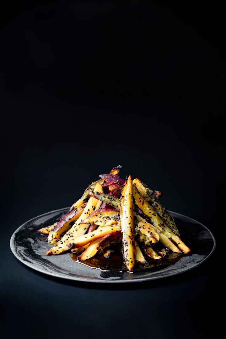 一般的な大学芋とは違い、栗歩と芋こ自慢の熟成蜜焼き芋を使用。一般的な大学芋のほくほくとした食感でなく、カリッとした食感の後には、ねっとりした食感が口に広がり、まさに新食感。特製のたれも蜜芋とマッチし、味わい深い一品となっています。