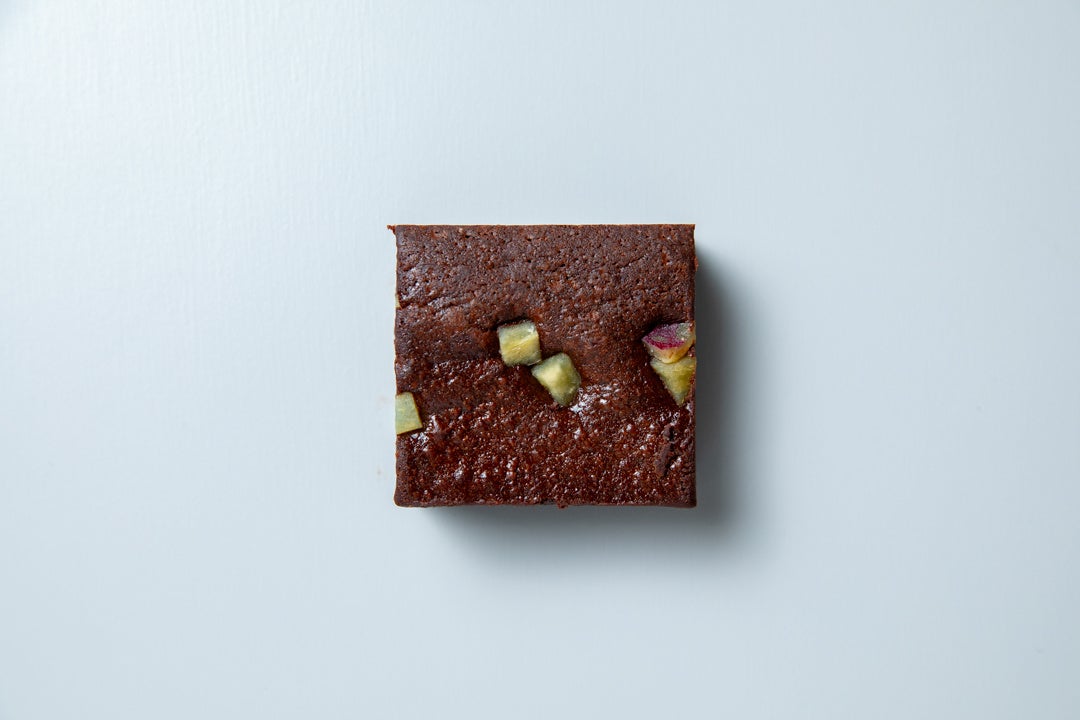 まるで生チョコを食べているかのような濃厚な味わいが口いっぱいに広がる、しっとり濃厚なブラウニーです。生地には紅はるかをダイス状にカットした物を練りこんでおり、食べ進めるごとにお芋のほくほく食感も楽しめます。抹茶は京都宇治産の抹茶を使用しており、豊かな香りをお楽しみいただけます。