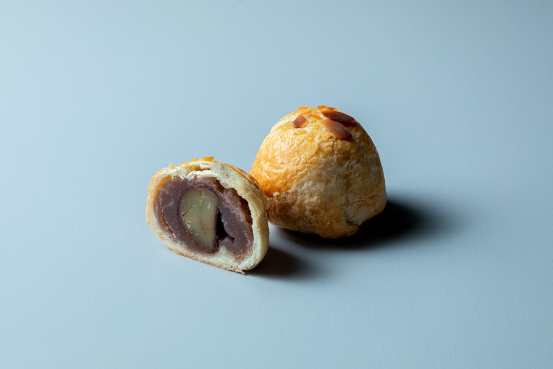 「丸ごと栗のマロンパイ」は、和栗の渋皮煮を一つ丸ごと贅沢に使用。和栗の甘みと香りを引き立てる口当たりなめらかなこしあんを、サクッとしたパイ生地の中に詰めました。