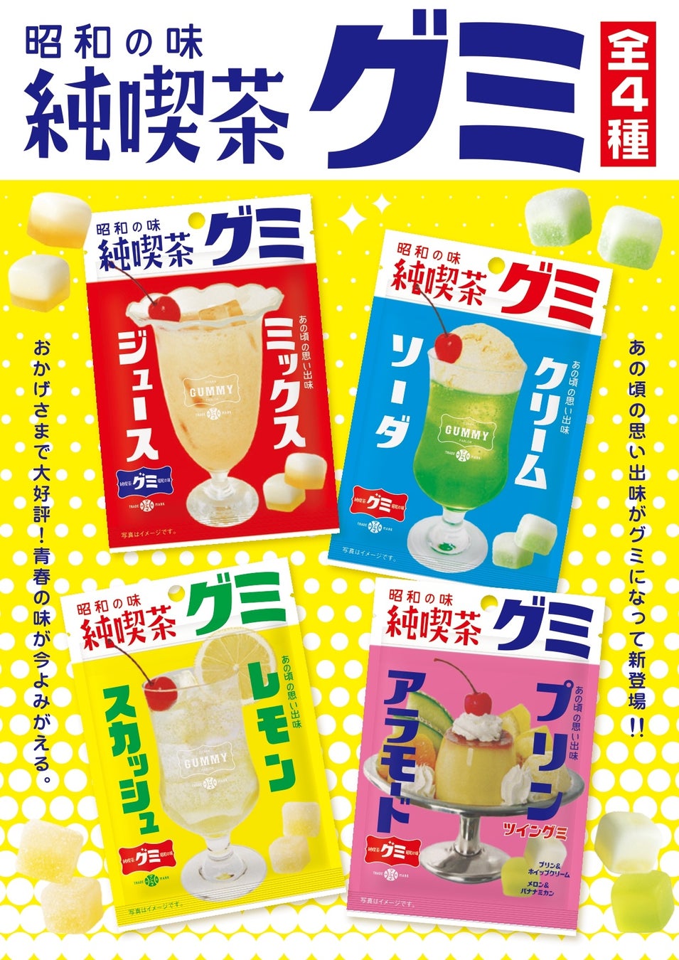 純喫茶シリーズは昭和の喫茶店で人気のあったメニューの中から子供心に、「一度は食べたいな…」と想っていた懐かしのドリンクやパフェをグミで再現した企画でした。