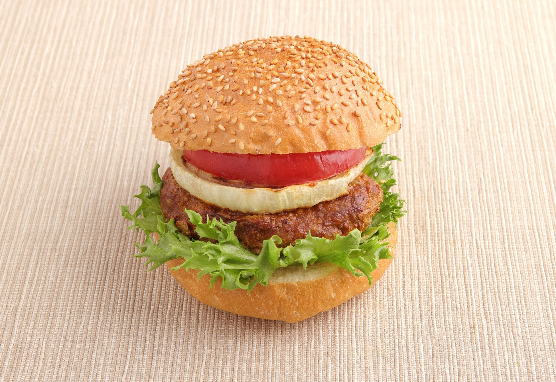 海藻あかもくを食べて育った「あかもく三元豚」入りの煮込みハンバーグをサンド。柔らかくてジューシーなハンバーグが食べ応え抜群のハンバーガー。