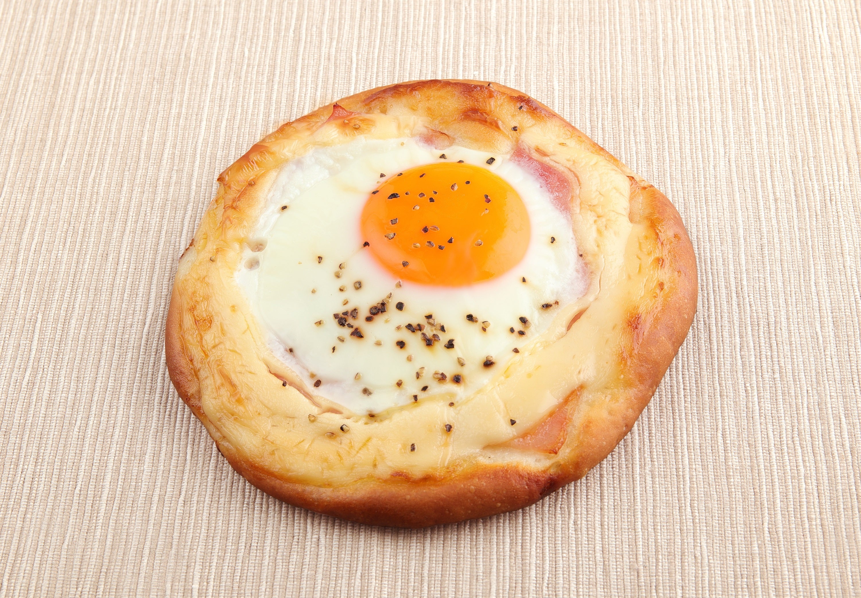ベーコンの上に卵をのせ、満月のように丸く焼き上げました。マヨネーズのコクとベーコンの塩味が目玉焼きとよく合います。