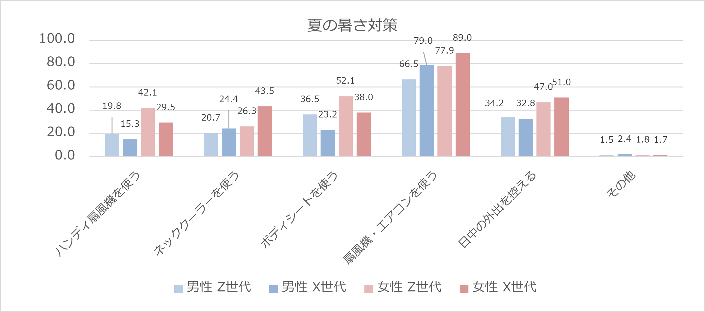Z世代と比較すると、X世代は暑さ対策や熱中症対策に意欲的