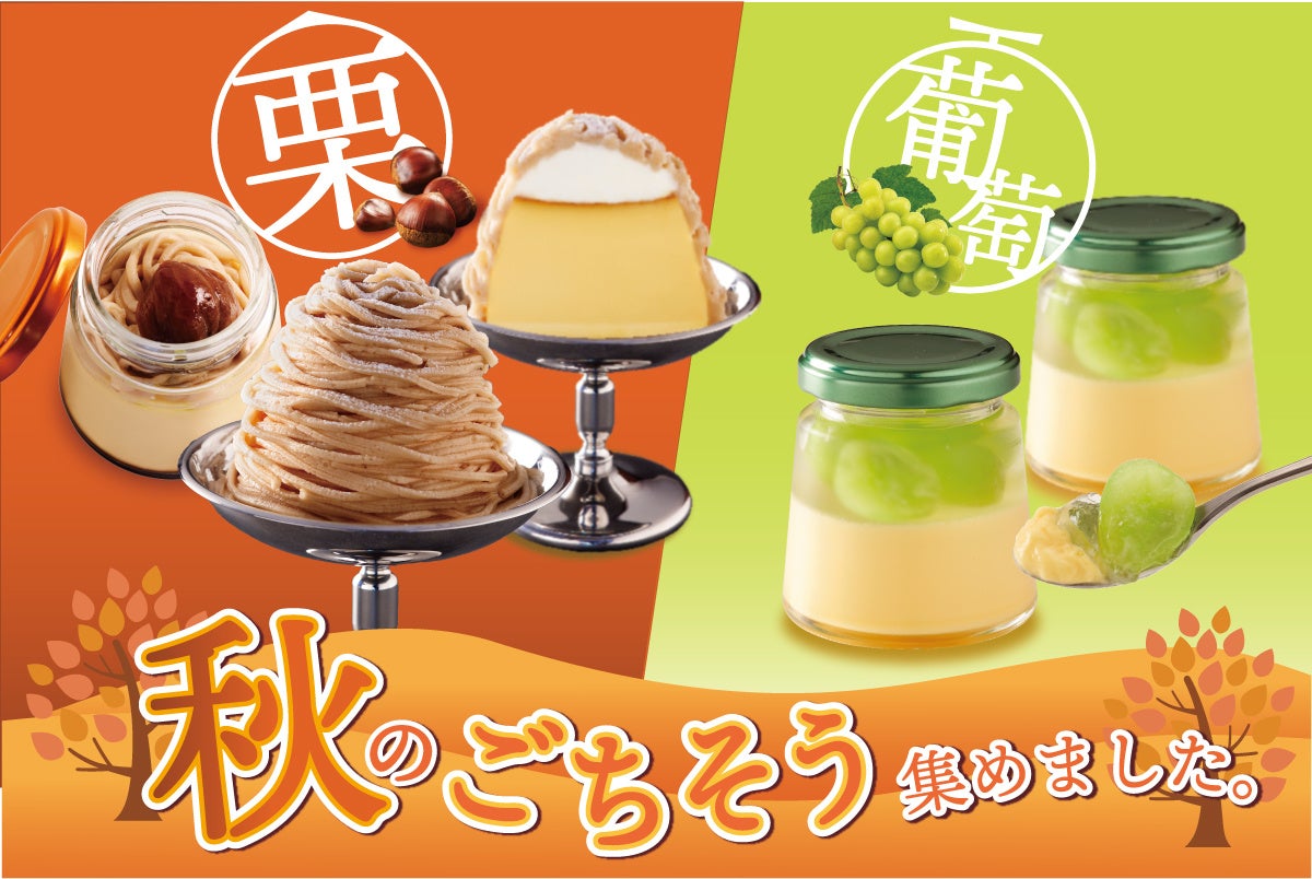 9月1日(金)よりテイクアウトプリン専門店【プリンに恋して】は『絞りモンブランプリン』と『モンブランプリン』、『シャインマスカットプリン』を期間限定販売いたします。秋のごちそう“栗”と“葡萄”をぜひご堪能ください!