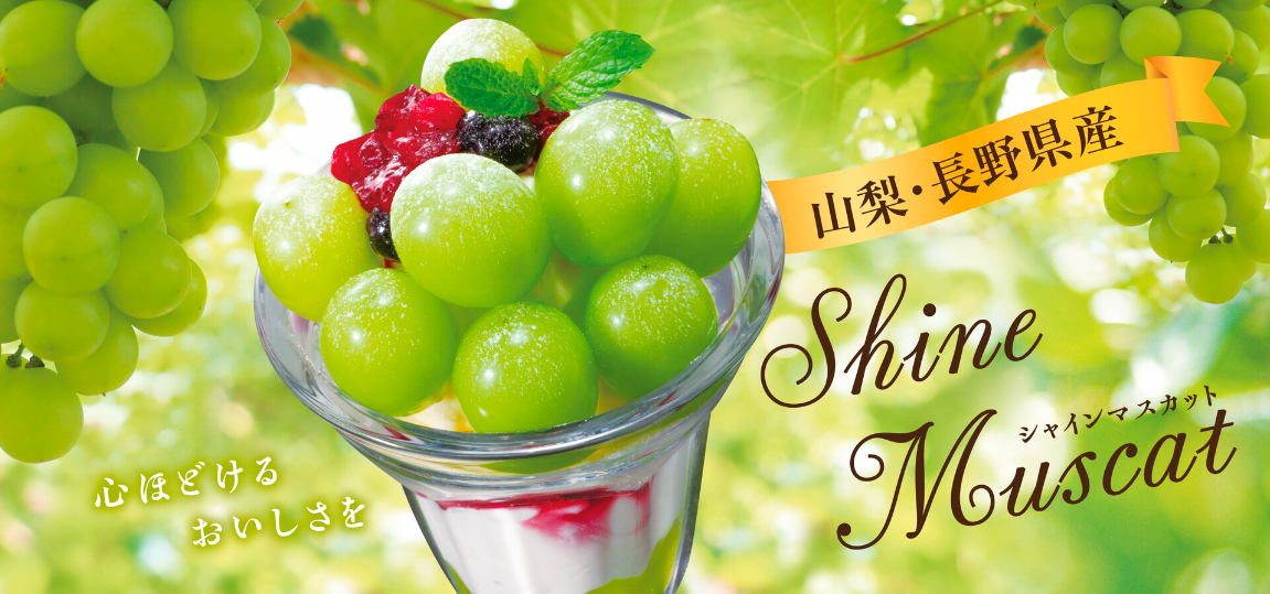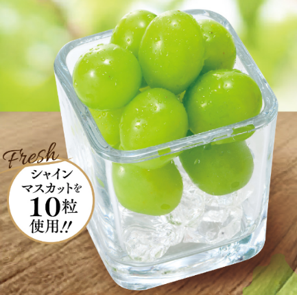 使用するシャインマスカットは、山梨・長野県産を使用。「パリッと弾ける食感」「ジューシーな果汁」「高貴な香り」が特徴です。