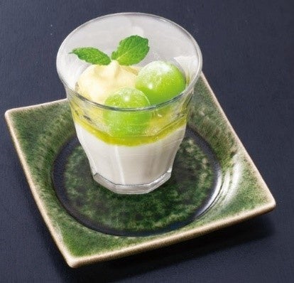 シャインマスカットを贅沢に9粒使用しており、素材そのものの上品な甘さにシルクバニラアイスと杏仁プリンを併せることで、ジューシーな果汁と高貴な香りが調和し、贅沢感を存分に味わえる逸品です。