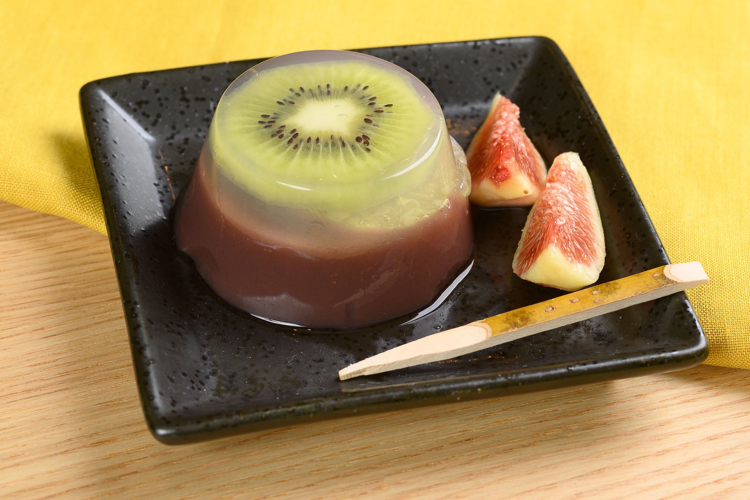 甘い和菓子が苦手な人を対象に作りました。子どもや若い世代にも食べてほしい万人向きのレシピです。甘すぎる和菓子が多い中で、キウイの酸味を取り入れ爽やかな冷菓を作ってみました。