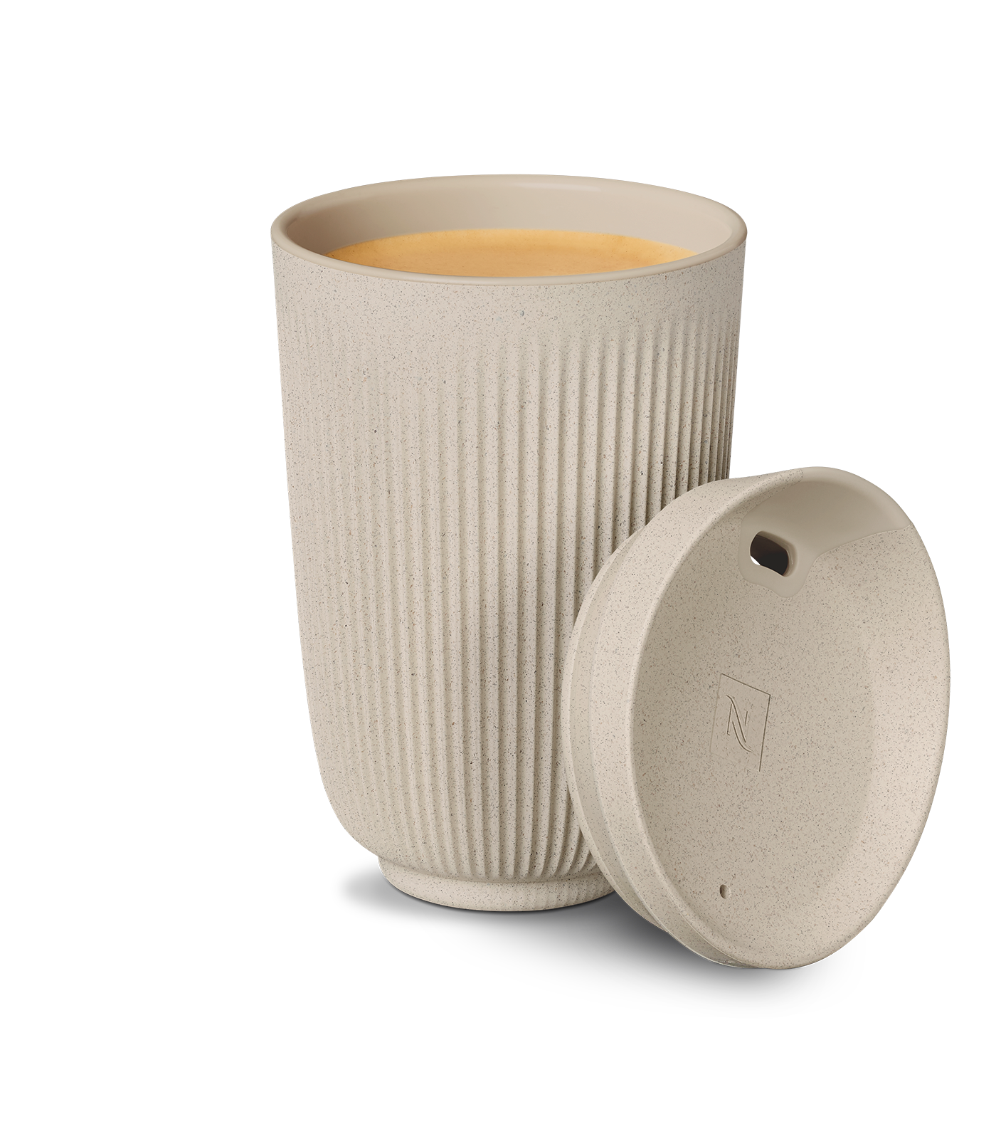 コーヒーハスクを本体カップに約30%使用。便利なリッド付きです。
