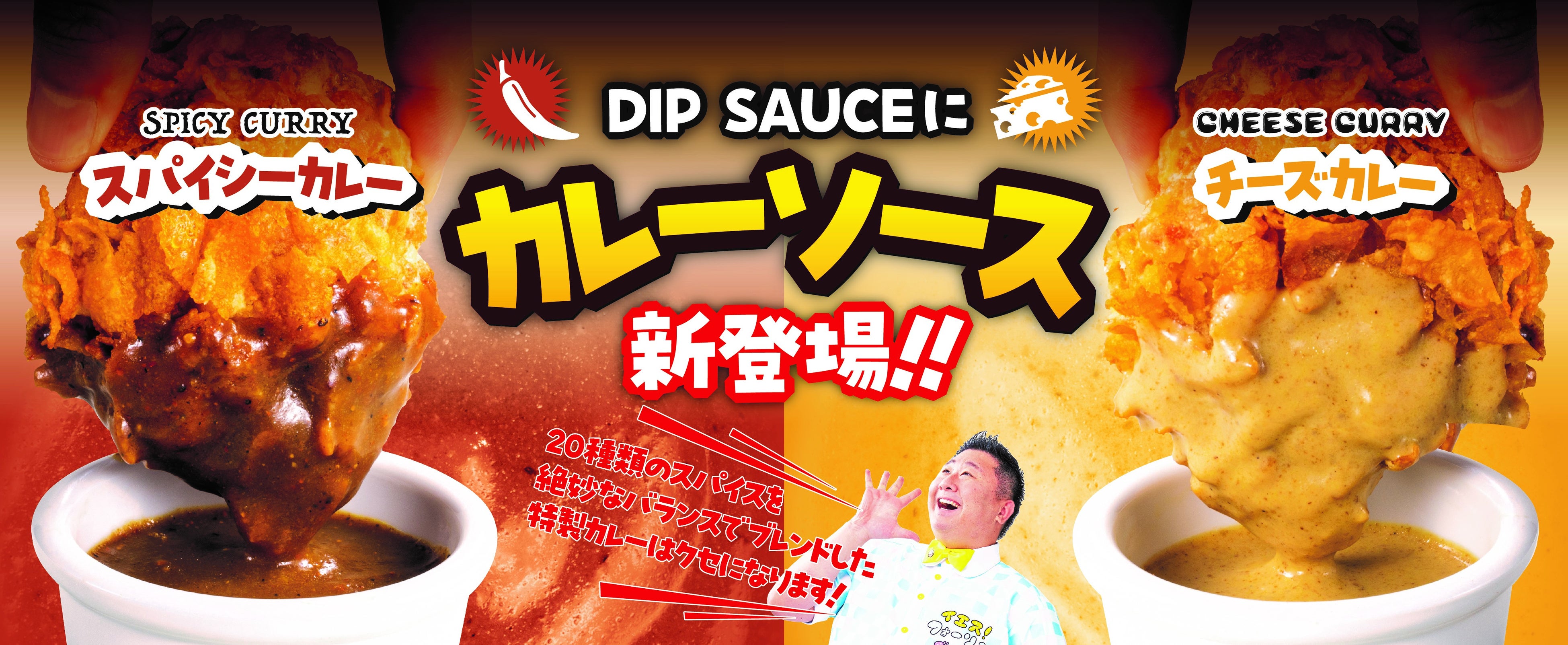 そんなバラエティ感が豊富なディップソースに新たな2種類のソースが仲間入り!20種類のスパイスで仕上げたカレーソースに、1つ目は唐辛子の効いた辛味パウダーを掛け合わせた「スパイシーカレーソース」、2つ目はなめらかチーズを加えてクリーミーな味わいの「チーズカレーソース」、どちらも一味違うカレーテイストが楽しめるので、ぜひ食べ比べてみてください!そして、さらにさらに9種のソースが楽しめる、その名も「ディップオールスターパック」も新登場!見た目も味もエンターテインメント性抜群なので、ぜひ一度、体感してみてください!