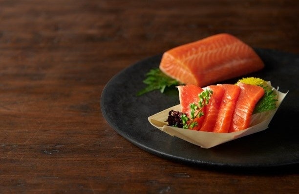 ▲山梨県で生産される国産陸上養殖サーモンは銀座三越で刺し身・にぎり・切り身などで提供される予定