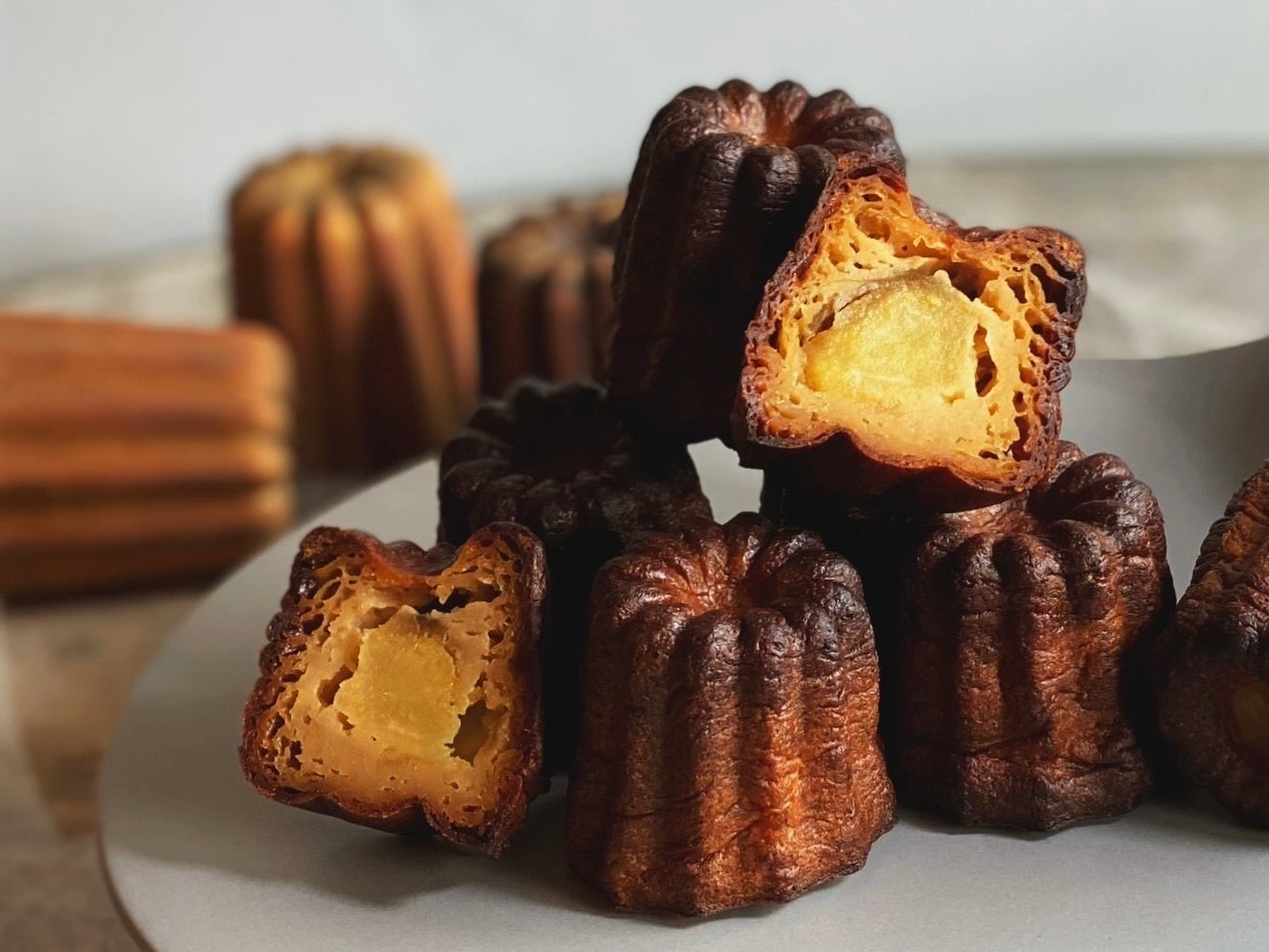 表面部分は蜜芋の皮から抽出した香りを纏い、カリッとした食感は軽やか。濃厚な蜜芋とのバランスも絶妙。新しいカヌレの誕生です。