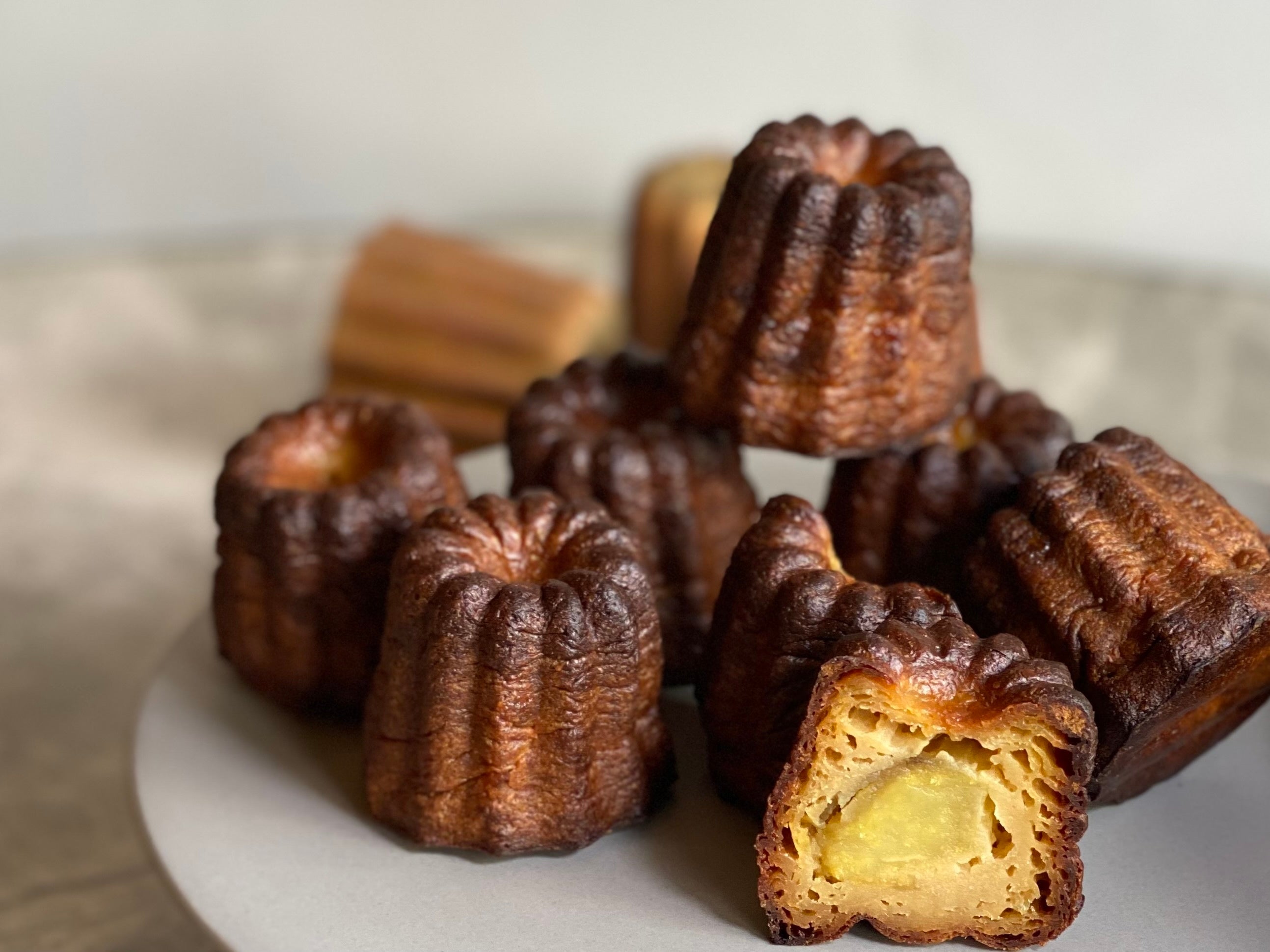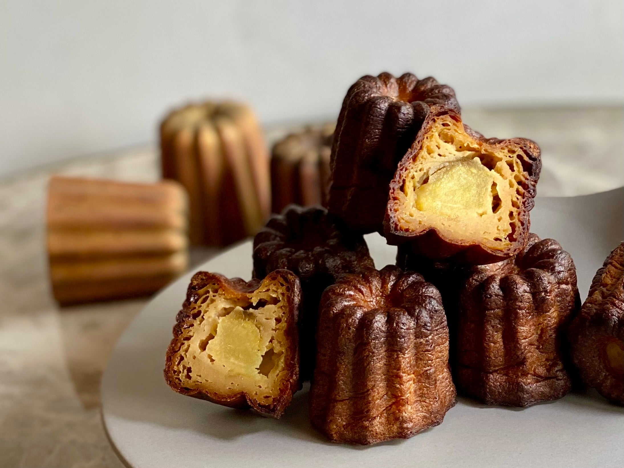 表面部分は蜜芋の皮から抽出した香りを纏い、カリッとした食感は軽やか。濃厚な蜜芋とのバランスも絶妙。新しいカヌレの誕生です。