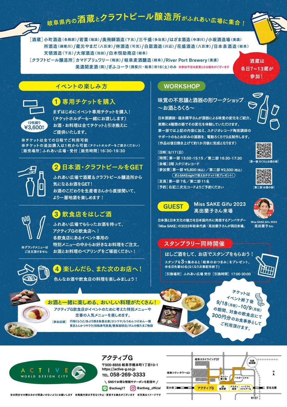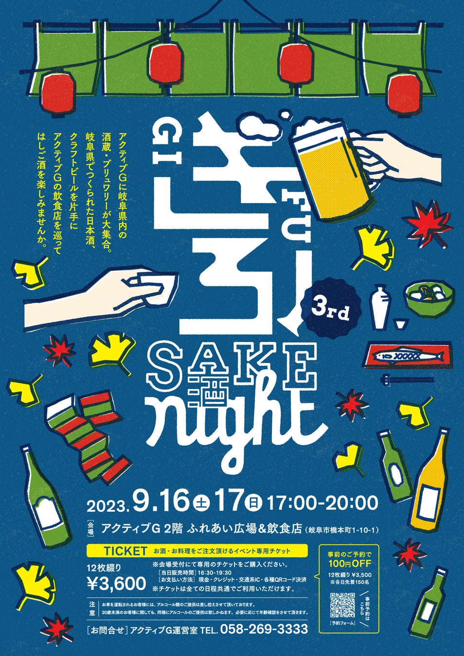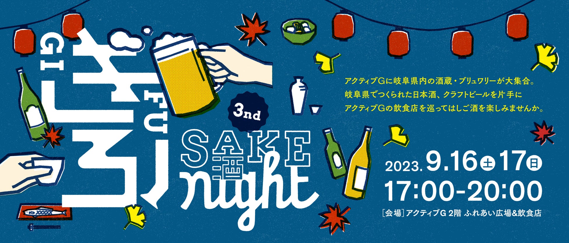 アクティブGでは、2023年9月16日(土)・17日(日)の2日間、岐阜県の地酒・クラフトビールと飲食店の料理を堪能できるイベント『ぎふSAKE night 3rd』を開催いたします。