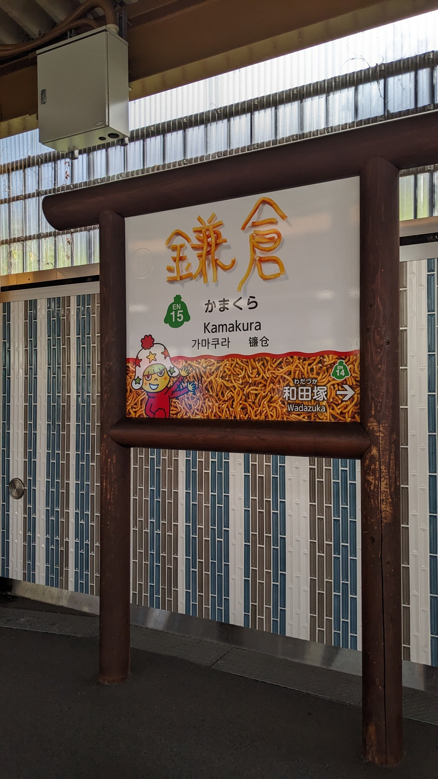 麺文字駅看板:藤沢駅・江ノ島駅・鎌倉高校前駅・稲村ヶ崎駅・長谷駅・鎌倉駅の6駅