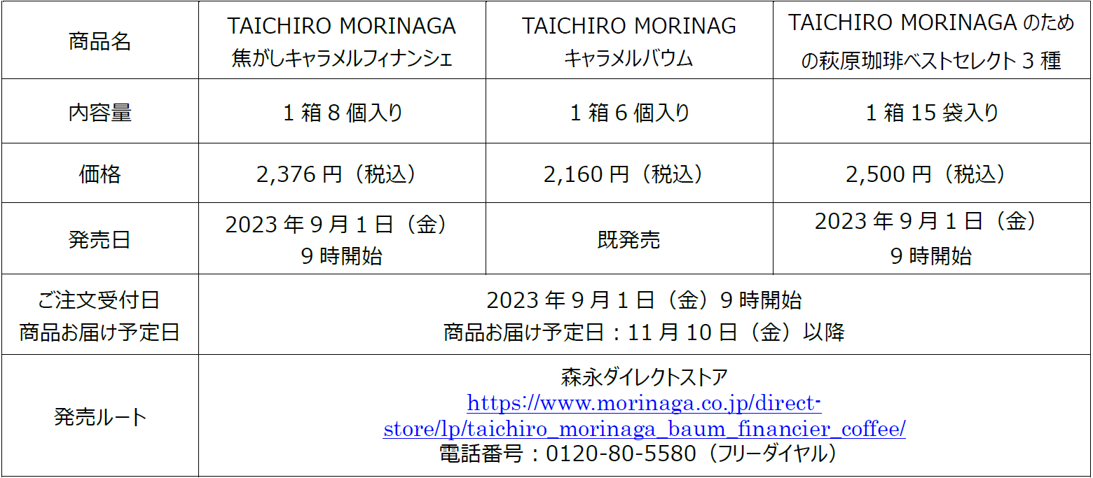 本年4月に森永ダイレクトストア限定で発売された「キャラメルバウム」は事前の販売計画比約300%と好調な実績でした。今回は、「TAICHIRO MORINAGA」第2弾として、「焦がしキャラメルフィナンシェ」を新発売いたします。創業者森永太一郎が、創業当時から製造してきた「キャラメル」の新たなおいしさを求めてたどり着いたのが、「焦がしキャラメル」。絶妙な火加減により、キャラメルの旨味を最大限に引き出し、コク深い味わいに仕立てました。また、前回ご好評いただいた「キャラメルバウム」も再発売いたします。