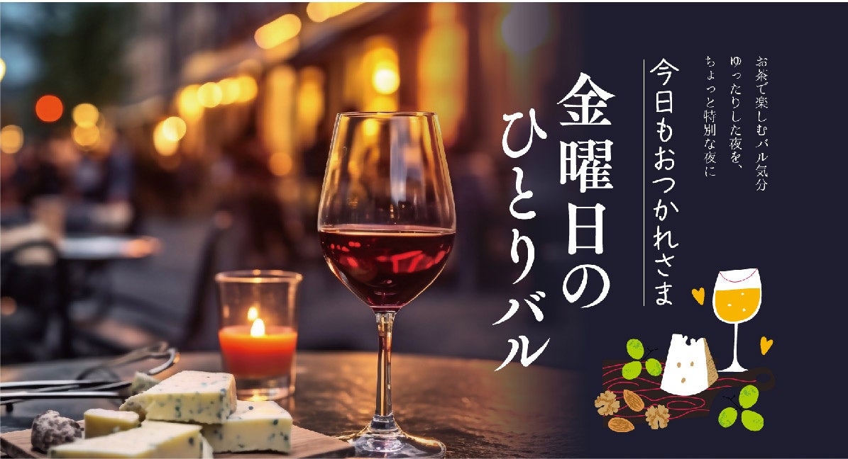週末に向けて解放感が高まる金曜日の夜。自分だけの至福の時間に寄り添うお茶をイメージした「金曜日のひとりバル」は、普段お酒をたしなまない方にとってもお酒がもたらす高揚感やリラックス効果を楽しんでいただけるように開発されました。マグカップや茶器ではなくお酒のようにグラスに注ぎ、和菓子ではなくお酒のアミューズのようにチーズやナッツ、生ハムをお供にすることで、お茶で気軽にバル気分が楽しめます。
