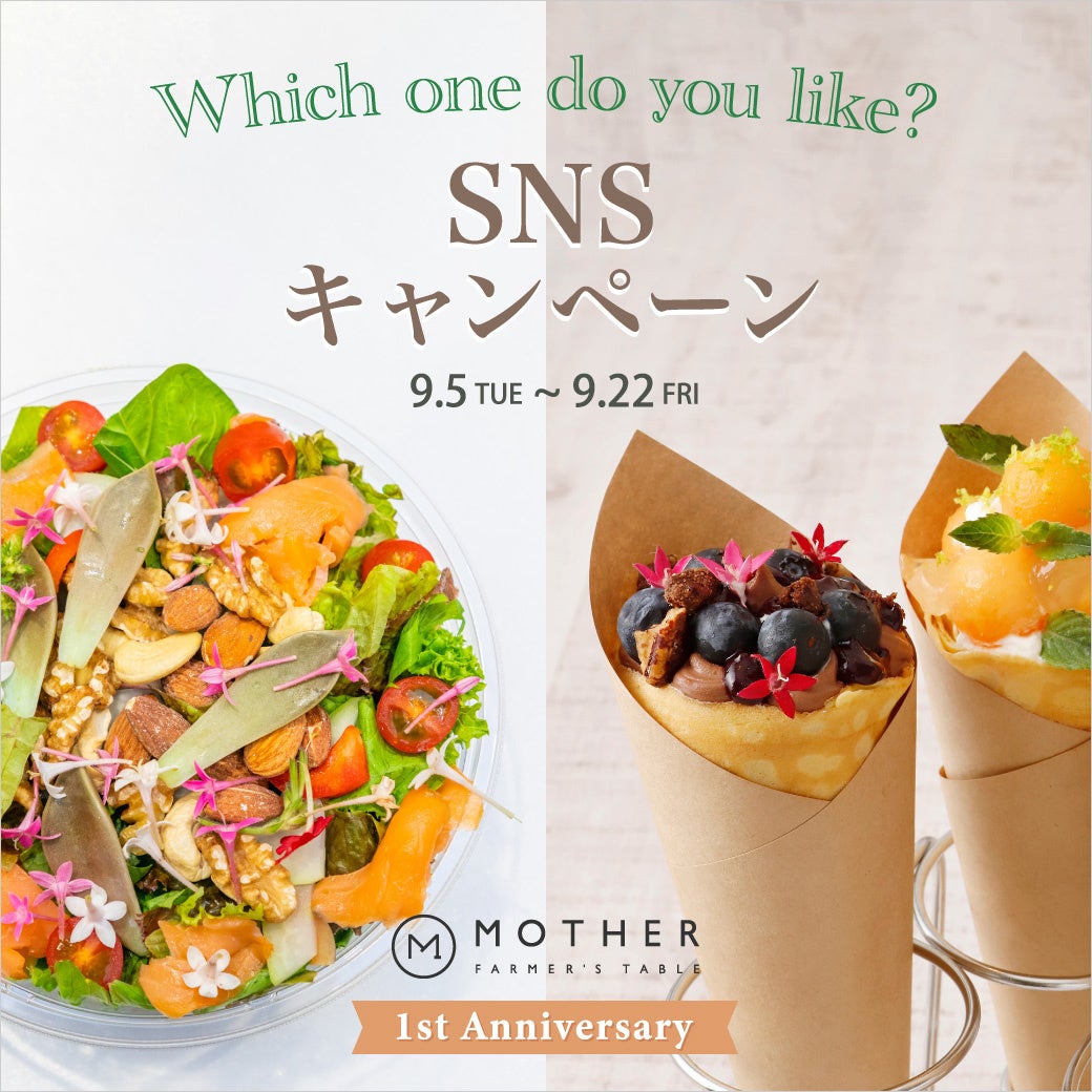 「FARMER’S TABLE MOTHER」公式Instagram2種(サラダ・クレープ)いずれかをフォロー