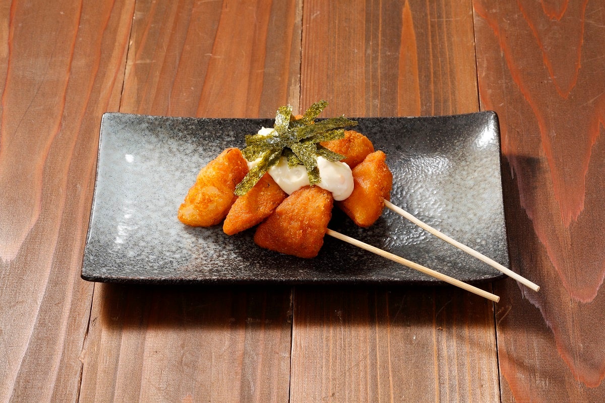 乱切りにした国産長芋の唐揚げをオリジナルタルタルソースでお召し上がりください。