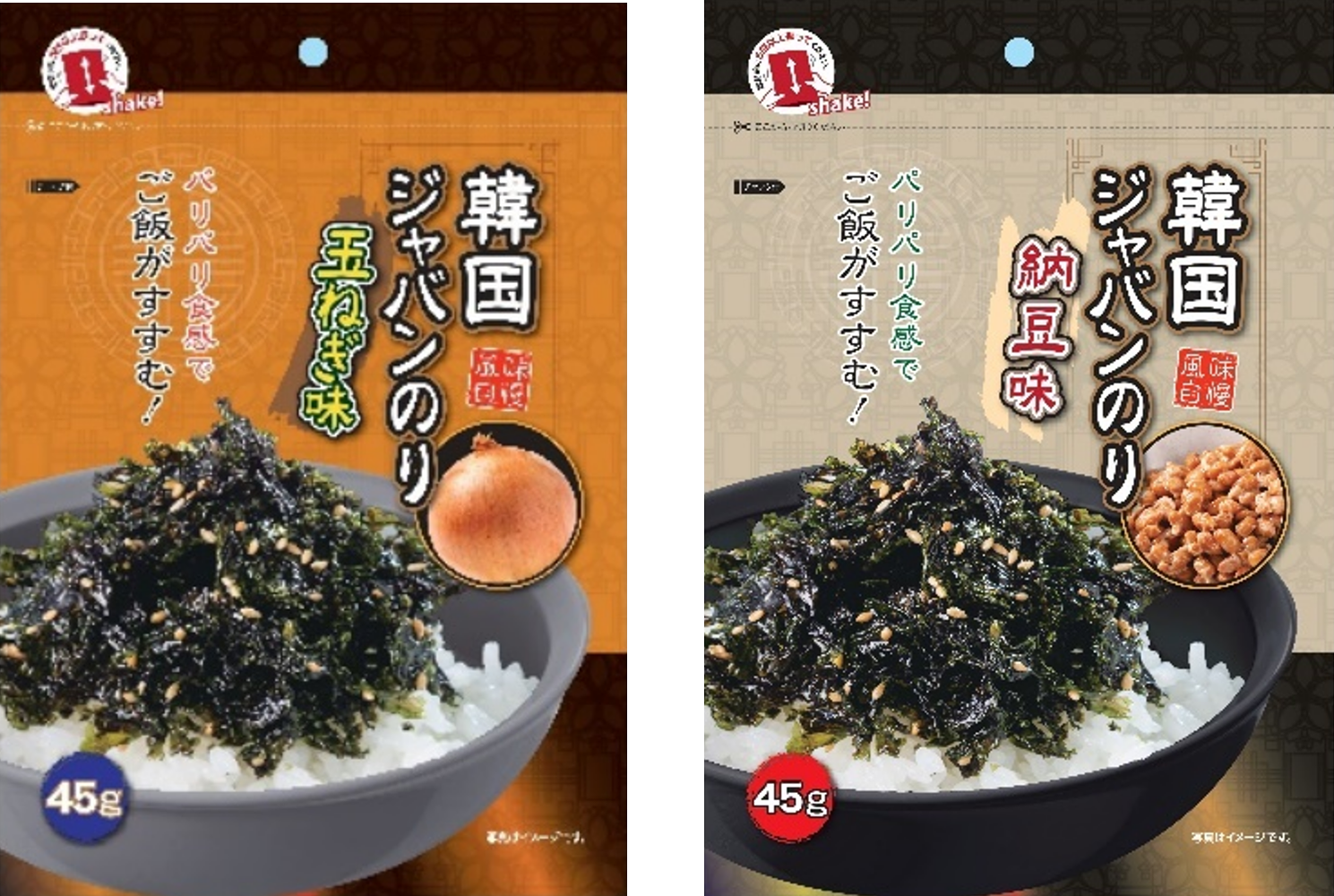 韓国ジャバンのり 玉ねぎ味(画像左)・韓国ジャバンのり 納豆味(画像右)