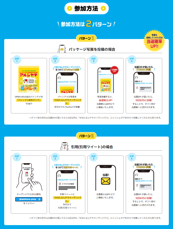 1)ハッシュタグ「#当たるんやでオープンハウス」を付けて投稿