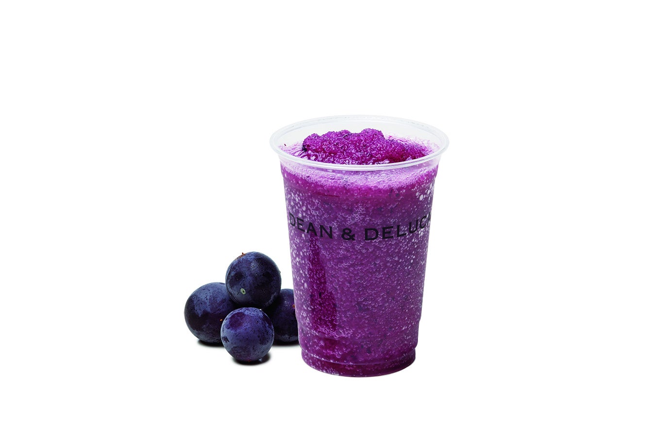 日本のブドウ「巨峰」のおいしさを、そのままフレッシュジュースに仕あげました。粒をそのまま頬張ったときに口いっぱいに広がる、甘みや酸味、独特の渋みも活かすため、皮も一緒に氷とクラッシュ。上品で華やかなパープルは、フルーツ本来の色です。