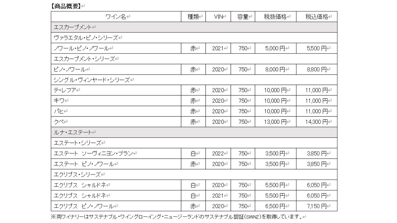 今回取り扱いを開始する「エスカープメント」「ルナ・エステート」は、ニュージーランドでもピノ・ノワールの銘醸地として名高いワイララパ地方マーティンボロのワイナリーです。マーティンボロはニュージーランドの北島の南端に位置し、リムタカ山脈とワイララパ東部丘陵の間にあり、長い日照時間、少ない降水量、夜間の涼しい気温、水はけの良い土壌というブドウ栽培にとって好条件が重なる産地です。1970年代、政府の研究機関に所属する土壌学者ディレック・ミルネ博士により、気候条件がブルゴーニュに似ていると分析され、ワイン用ブドウ栽培に最適だと推奨されました。それがきっかけとなり1980年頃から産地形成が始まり、ニュージーランド全体のわずか1%ほどの栽培面積にもかかわらず、その品質の高さからニュージーランドを代表するピノ・ノワールの産地として名声を高めてきました。この度マーティンボロを代表するワイナリーの品揃えを強化することで、お客さまへ多様な選択肢の提案を強化し、より一層豊かなワインライフを提案します。