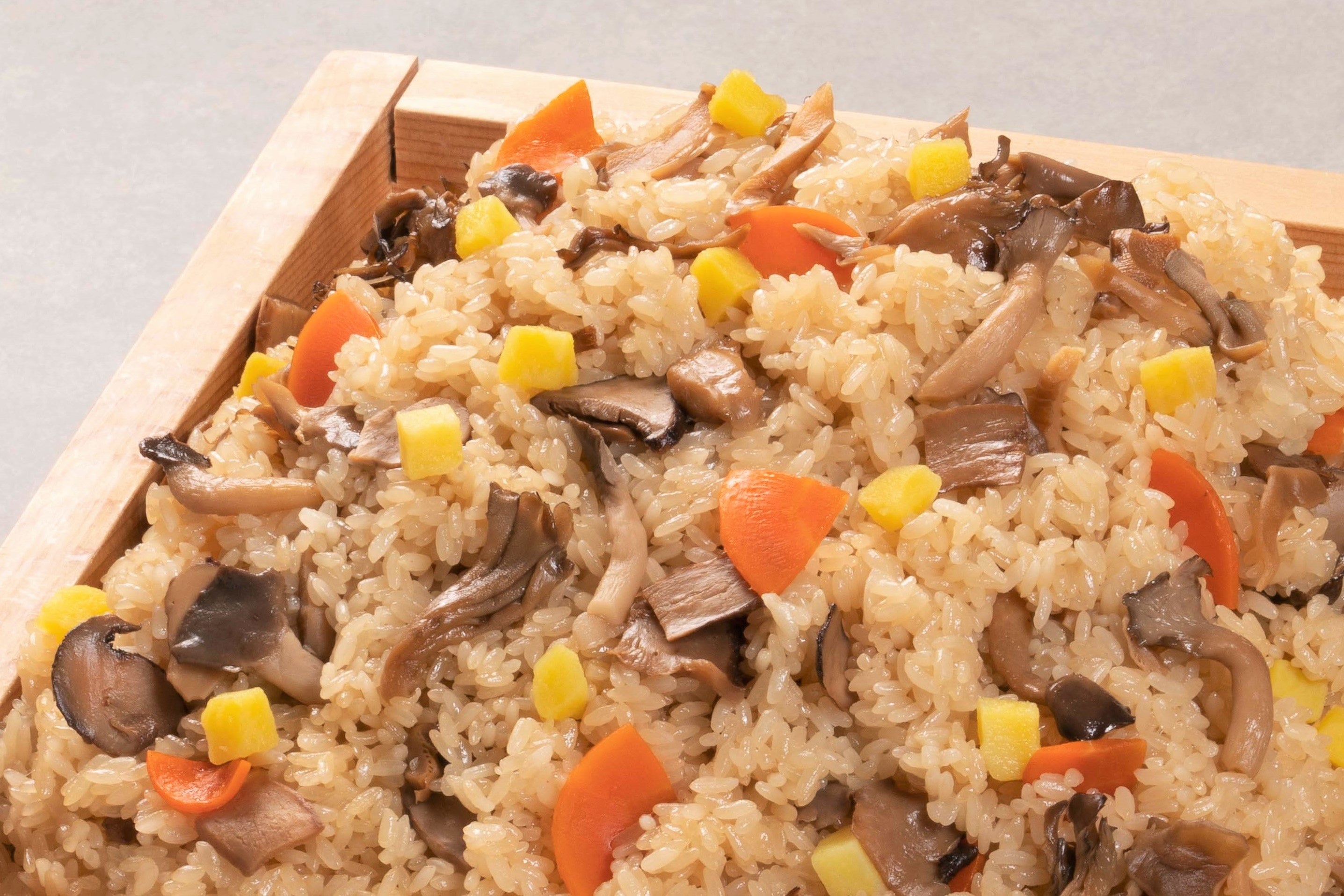 全国の「たごさく」「たもかみ」では、四季を味わう期間限定の“季節のおこわ”として「秋満載おこわ」を販売開始(※)いたします。旨みたっぷりのかつお出汁ときのこ出汁を厳選した国産もち米と合わせ、5種類のきのこ(松茸、舞茸、あわび茸、平茸、しめじ)、さつま芋など、秋の味覚をふんだんに混ぜ込んで蒸し上げました。