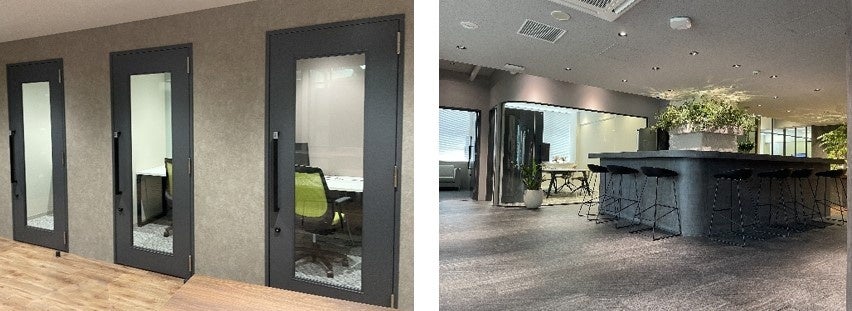 4階執務フロアはフリーアドレス制で、大小様々なサイズの会議室だけでなく、オンラインミーティング用の個室なども完備。さらには飲食が可能なバーカウンターも配置しました。日々の業務内容等にあわせて、快適な席やエリアを自由に選択できるようにするとともに、部署の垣根を超えたコミュニケーションを促し、業務の円滑化を図ります。