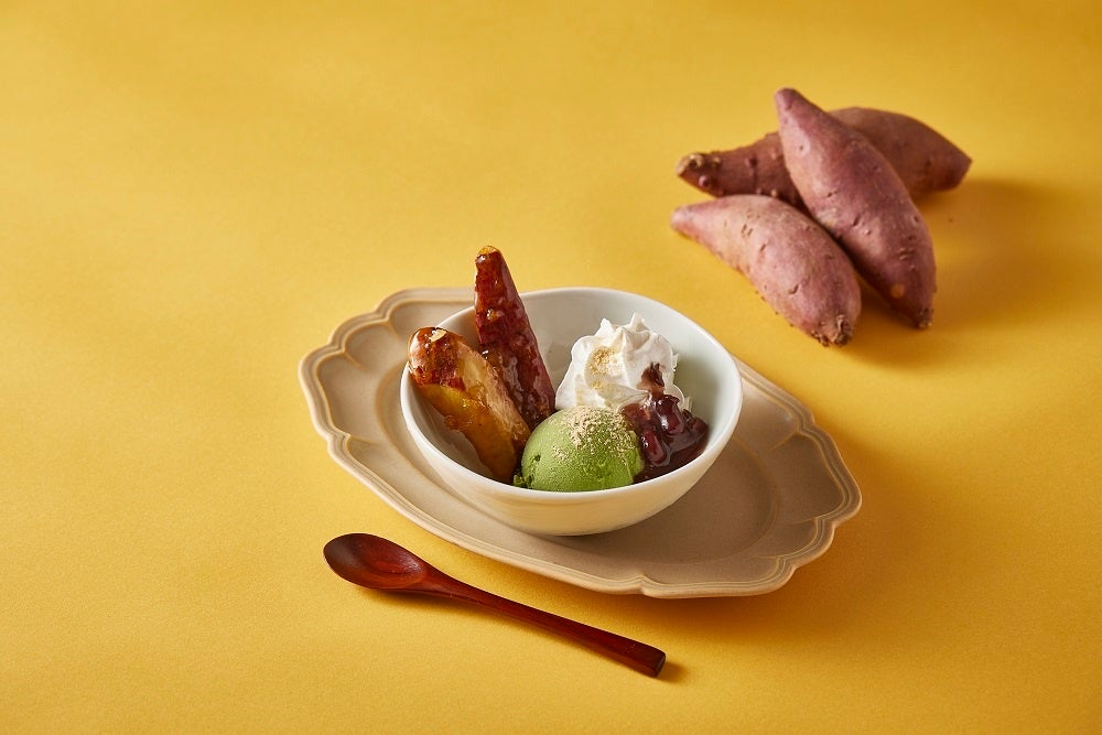 大学芋と小豆あんの甘さに抹茶アイスのほろ苦さがアクセントになった一品です。中学生の皆さんから提案いただいた“レトロ“というイメージを感じていただけたらと思い、大学芋をチョイスしました。お子さまから大人まで楽しんでいただける和スイーツをお召し上がりください。