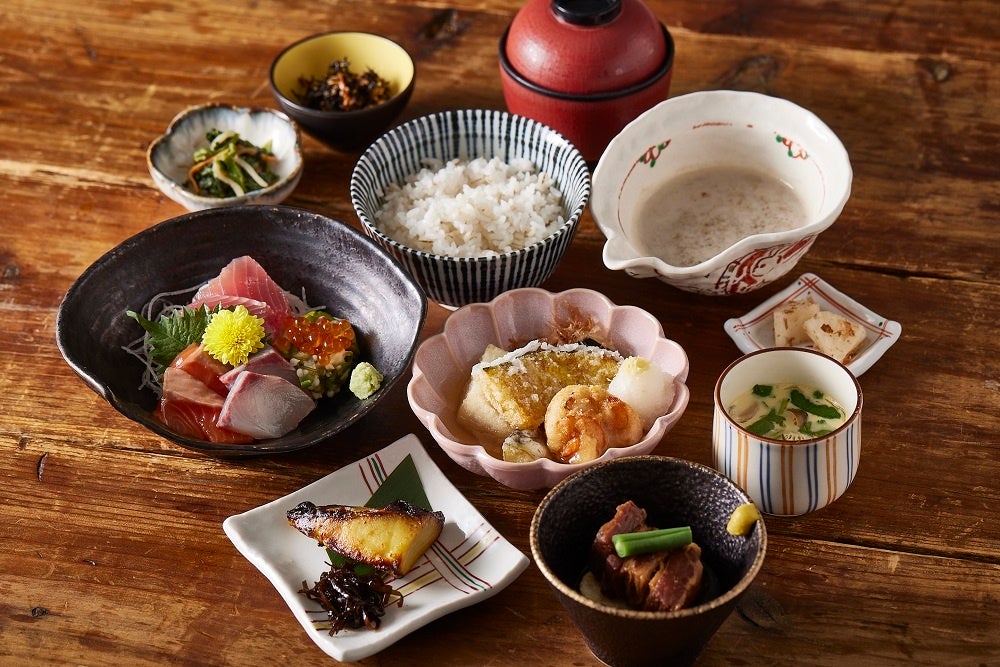 自然薯とろろ汁によく合う5つの和のおかずがついた、食欲の秋におすすめのぜいたく御膳です。