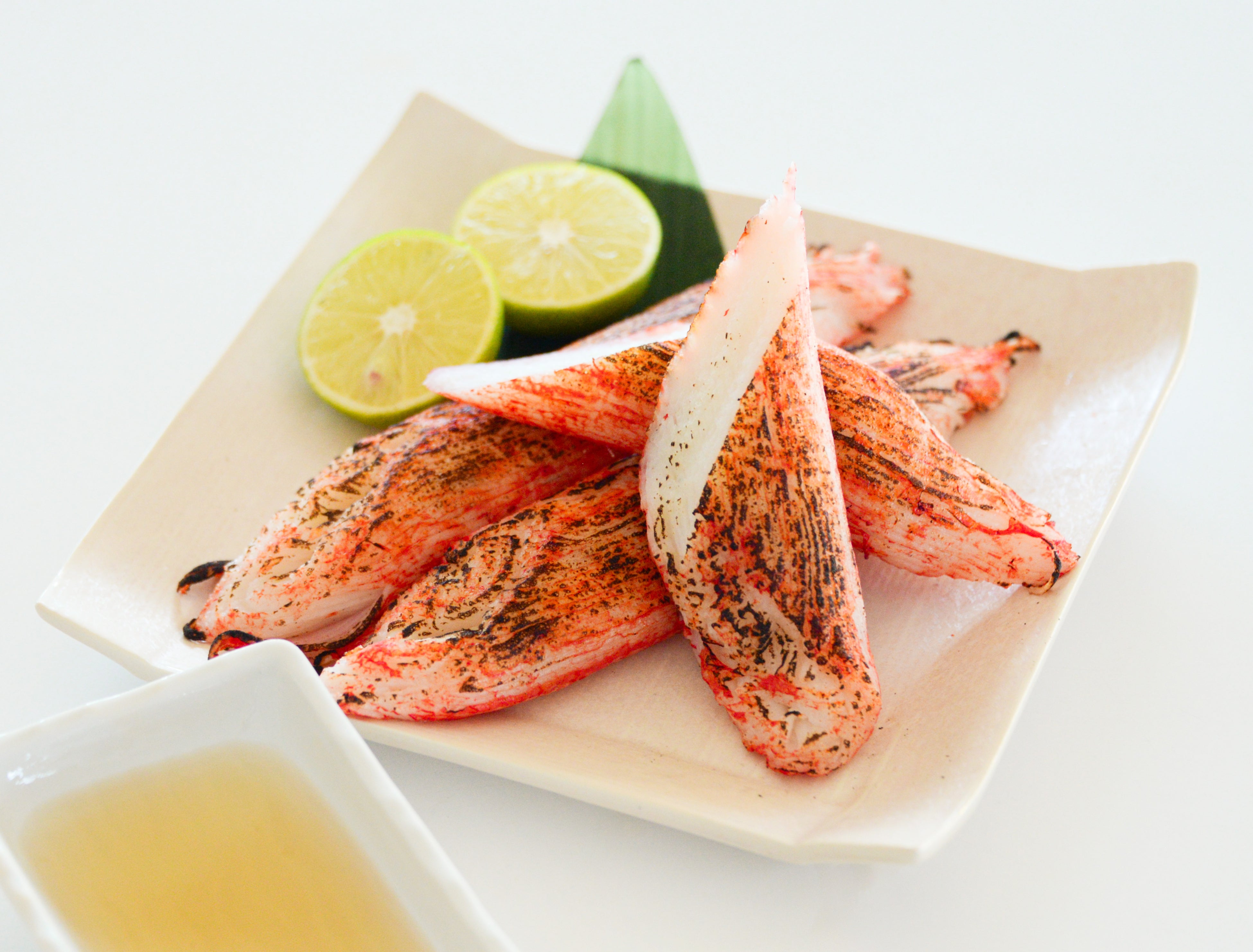 かに風味かまぼこと言えば、サラダのトッピングや料理の具材として使われます。一方「めっちゃかにやん」はおつまみとしてそのまま食べて頂けるように、1本あたりのボリュームにこだわり、厚みのある大きさに仕上げています。そのままでも十分美味しいですが、表面を炙っていただき、すだちをかけるとより一層美味しくいただけます。